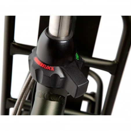 Autant d’agréments de conduite, visant à offrir toujours plus de confort à ses usagers. La géométrie de son cadre et sa selle Royale, jouent un rôle déterminant, à cet effet. Aussi, la potence réglable en hauteur et en profondeur permet à son utilisateur de personnaliser le réglage de sa position de conduite. Nos mains tombent naturellement sur ce large guidon recourbé, mettant à notre disposition les différentes commandes.