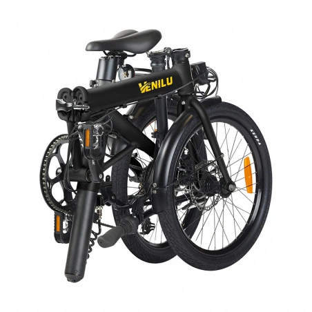 Le vélo électrique pliant Belge est livré d’origine avec ses garde-boue, son collier de selle antivol, son porte-bagage et même ses outils, nécessaires au réglage du vélo. Le vélo électrique pliant Venilu dispose d’un moteur positionné dans la roue arrière développant 45 Nm de couple et doté d’un dérailleur 7 vitesses. Les 7 vitesses vous permettent d’avoir une cadence de pédalage optimale dans toutes les conditions, ce qui participe au confort de l’utilisateur.