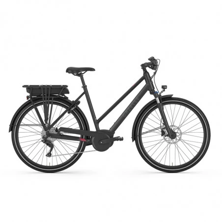 Un vélo électrique au caractère sportif, atténué par son cadre trapèze.
