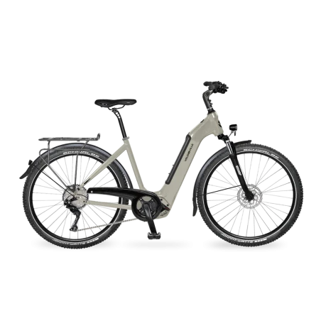 La marque allemande Vélo de ville propose, au travers du VTC SEB 890 SMART SMOOTH, un VAE au caractère sportif faisant preuve d’une très grande polyvalence. Il sera à l’aise sur route ou sur chemin de foret et offre un amorti optimal grâce à ses pneus larges en 27.5‘’ et sa fourche suspendue.